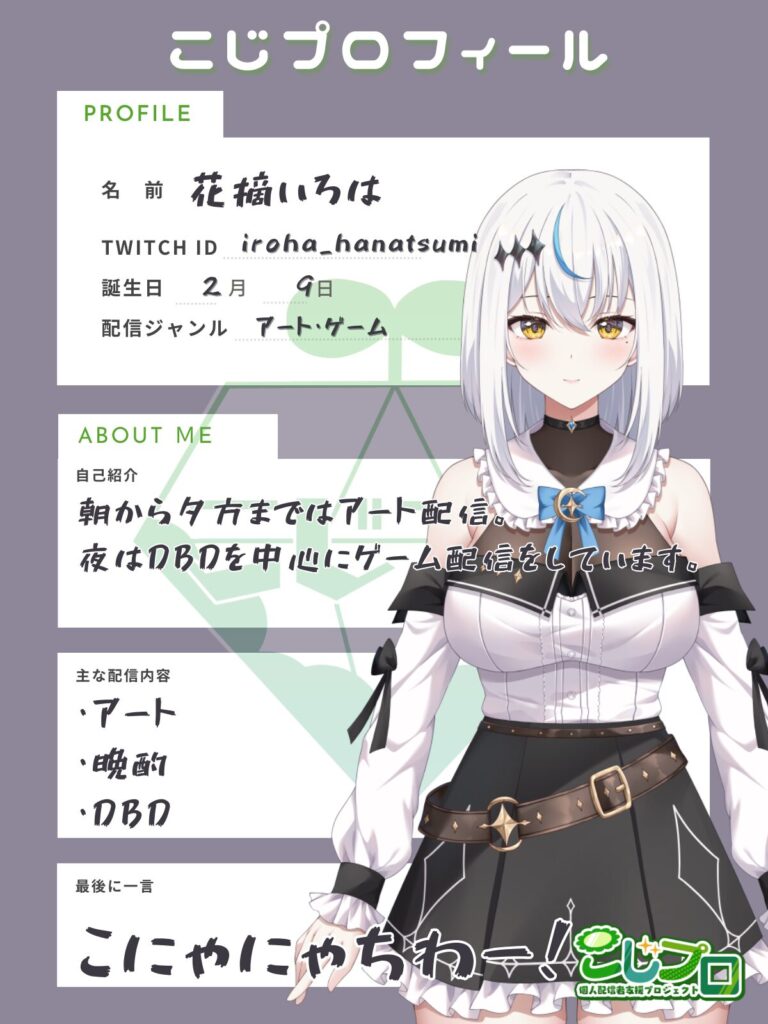 花摘いろは 2024.02.202025.05.28 はなつみいろは / Hanatsumi Iroha 花摘いろは イラストレーター / セルフ受肉VTuber 毎日、8時間ほどお絵描き配信しています。 Twitch Lit.Link X Twitchで「花摘いろは」を見てみる Twitch Lit.Link 花摘いろは lit.linkイラストレーター | VTuber、企業様、個人様を問わずお仕事 募集中です、SNS、画像、音楽、動画、個性とスタイルを1リンクに X Tweets by hanatsumi_iroha
